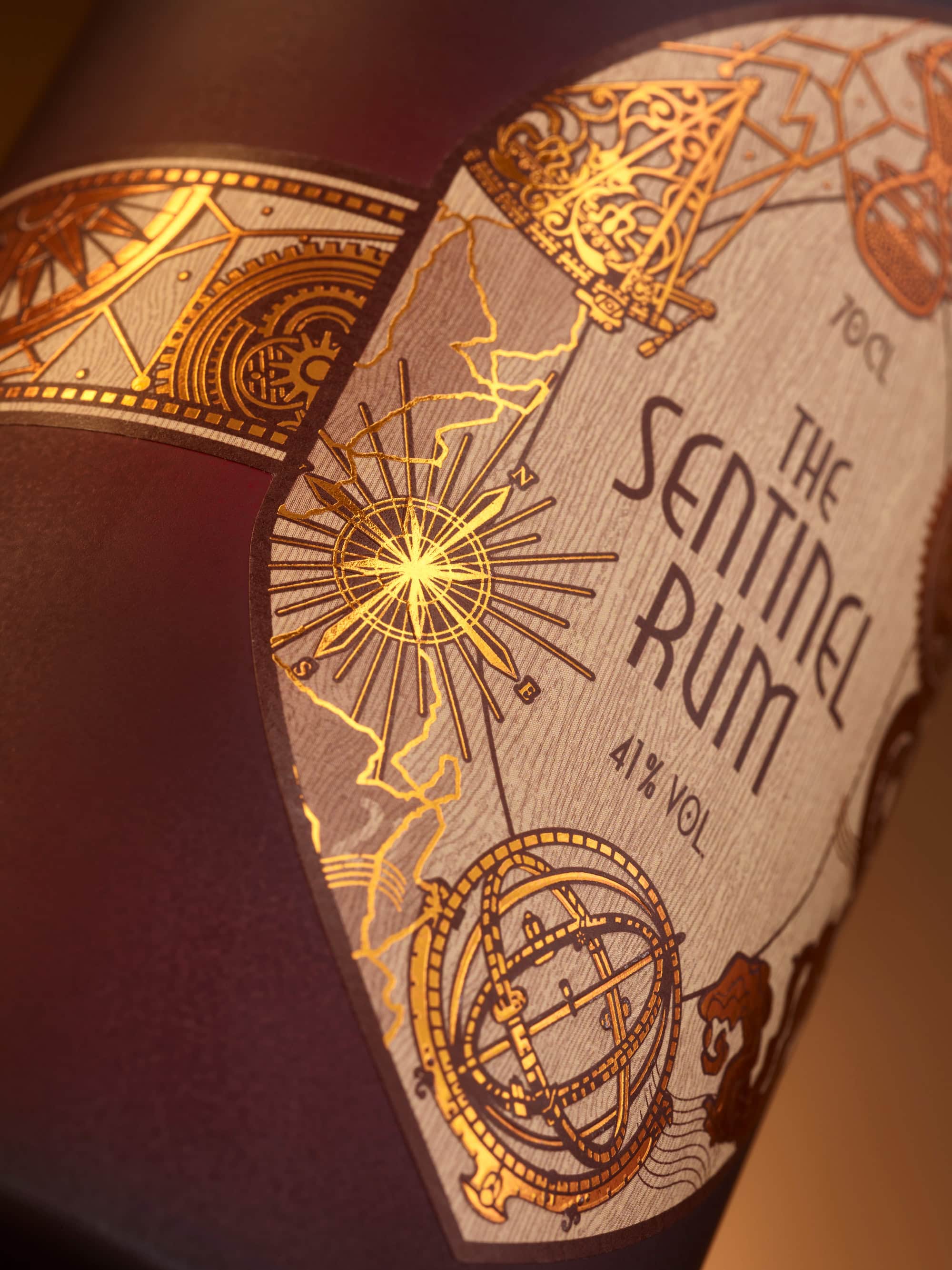 Encased in an dark-red, satin finished bottle adorned with nautical, time-traveling motifs, the Sentinel honours rum’s storied maritime past while charting a course toward its future. A guardian of tradition, reimagined for the modern rum lover.