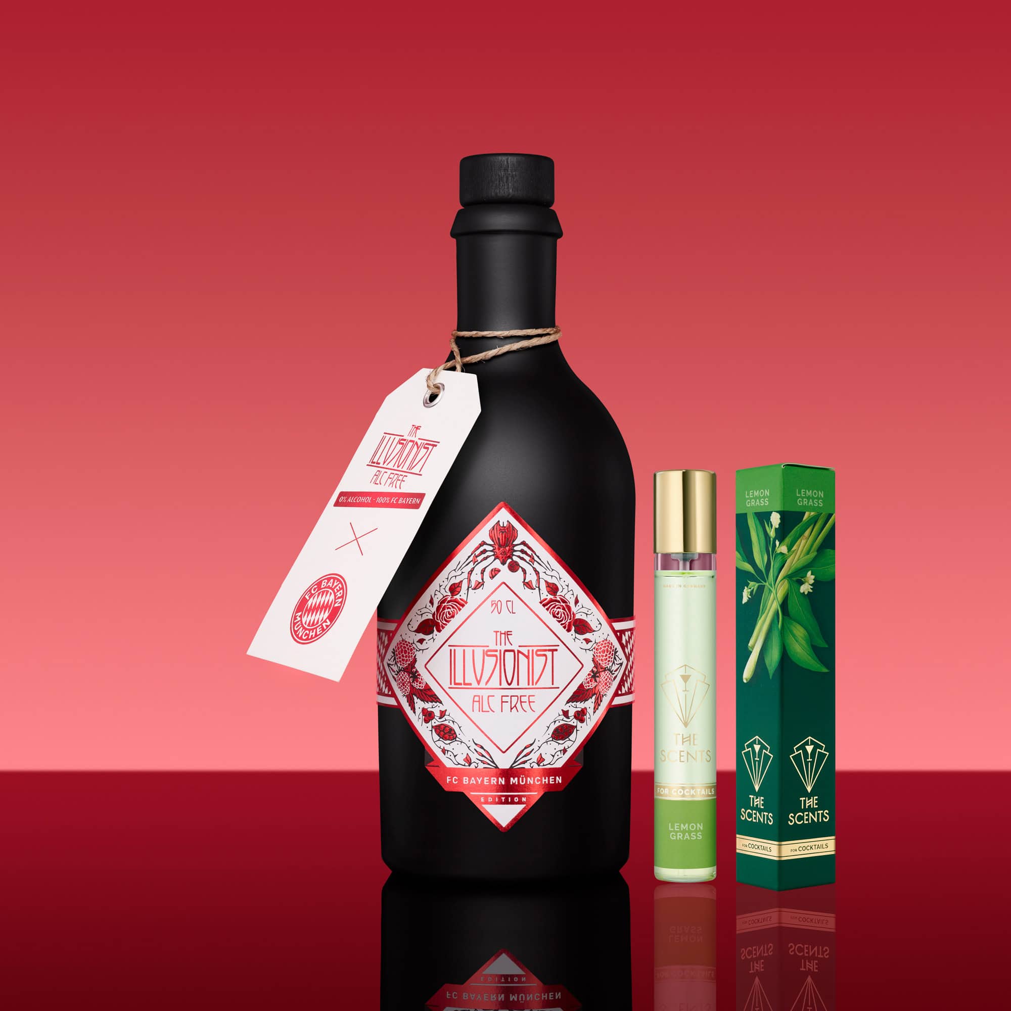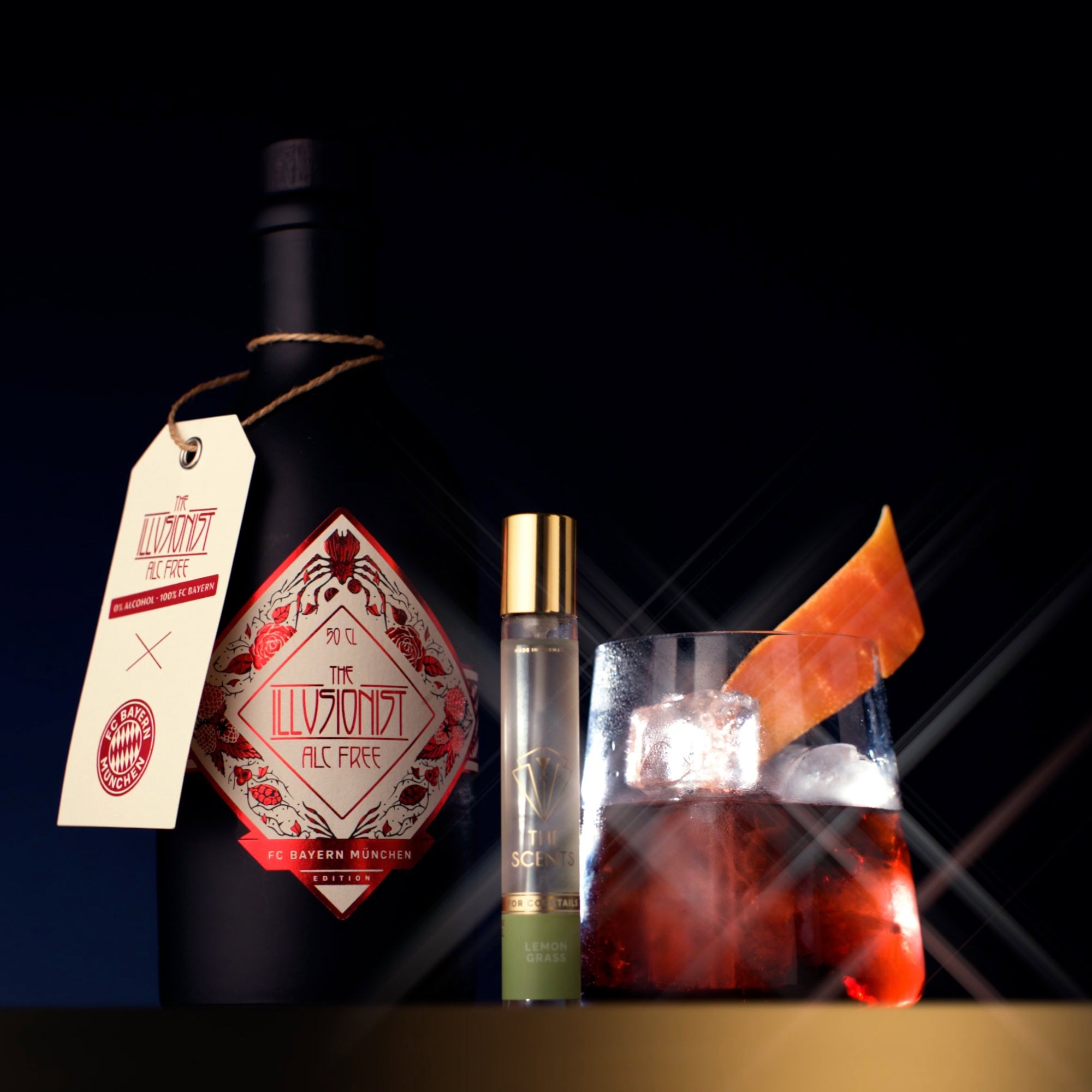 Volles Aroma ohne Alkohol. Zu jeder Illusionist Alc-Free FC Bayern München Edition erhältst du den Lemongrass Scent gratis dazu! Frisch, klar und ideal für leichte Drinks, die trotzdem Eindruck machen sollen.